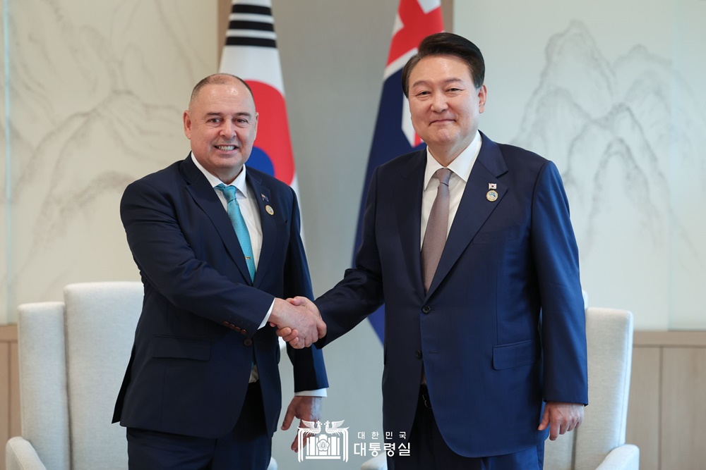 윤석열 대통령은 어제의 5개 태평양도서국 정상들과의 양자 회담에 이어 오늘(5. 29, 월) 오전 마크 브라운(Mark Brown) 쿡제도 총리, 데이비드 카부아(David Kabua) 마셜제도 대통령, 머내시 소가바레(Manasseh Sogavare) 솔로몬제도 총리, 달튼 타겔라기(Dalton Tagelagi) 니우에 총리, 수랭걸 휩스(Surangel Whipps Jr.) 팔라우 대통령과 정상회담을 실시했습니다.